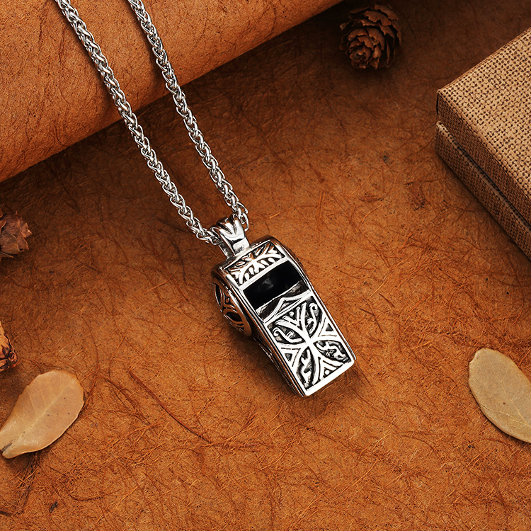 Antique Whistle Pendant Mens Punk Jewelry Stainless Steel Sports Necklace S107