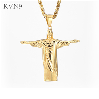 Cristo Redentor Pendant Gold Plated Religious Jewelry Stainless Steel Christian Pendant & Necklace S355 | ||||||