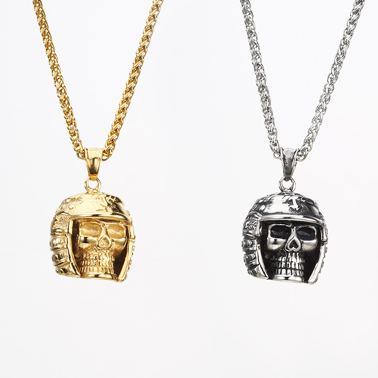 Helmeted Skull Pendant Necklace Men's Punk Gold Plated Jewelry Stainless Steel Skeleton Chain Necklace S231/S232 | ||||||