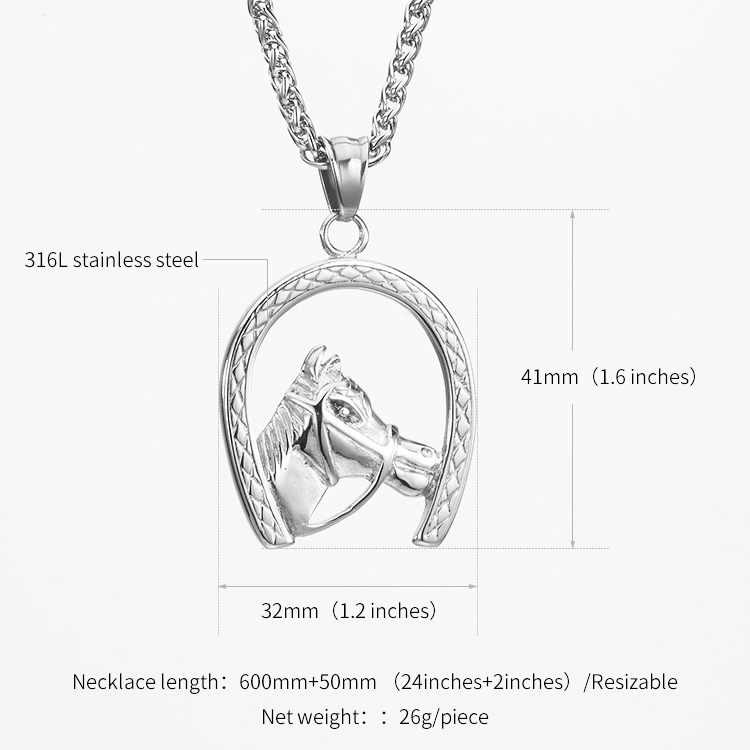 Horse Head Pendant Hip Pop Jewelry Stainless Steel Animal Pendant & Necklace S103