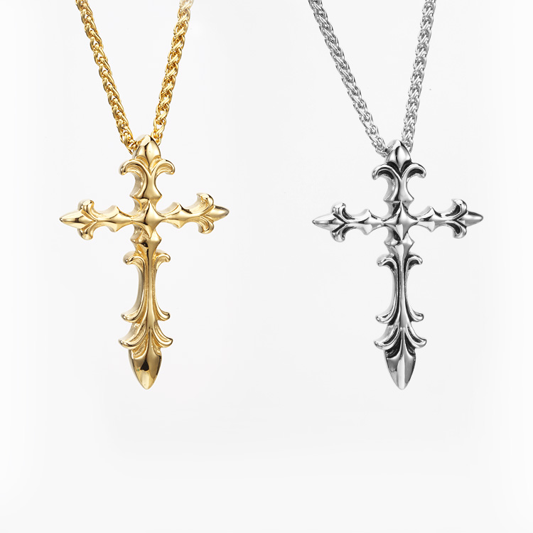 Latin Cross Fleuree Necklace Men Stainless steel Gold Plated Jewelry Budded Cross Necklace S117/S118 | ||||||
