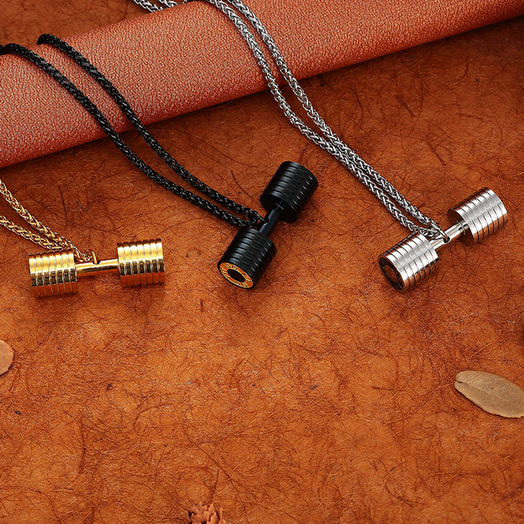 Punk Rock Adjustable Dumbbell Necklace Pendant Gold Plated Jewelry Black Gun Stainless Steel Bodybuilding Gym Necklace S273/S274/S275 | ||||||