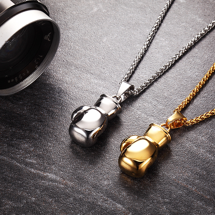 Small Boxing Glove Pendant Necklace Gold Plated Punk Jewelry Stainless Steel Sports Chain Necklace S127/S128 | ||||||