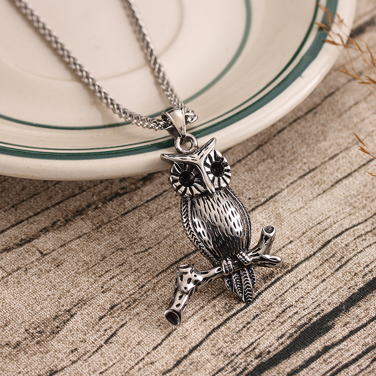 Trendy Night Owl Necklace Pendant Mens Animal Jewelry Stainless Steel Bird Chain Necklace S435 | ||||||