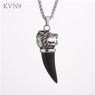 Wolf Tooth Pendant Necklace Vintage Rhinestone Jewelry Stainless Steel Animal Tooth Necklace S417 | ||||||