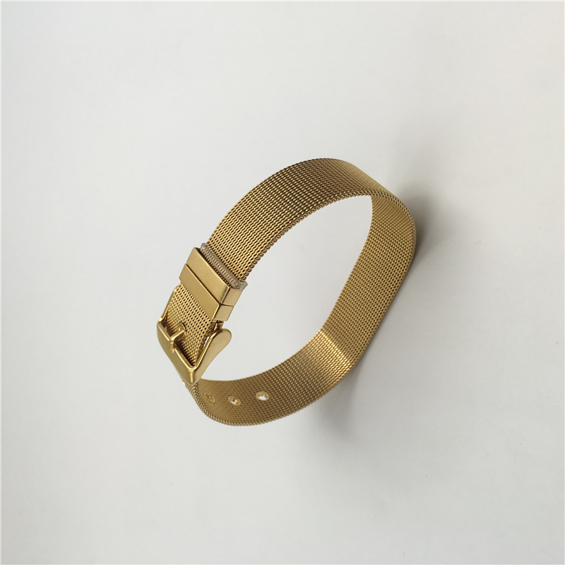 Men's Fashion Jewelry Gold-color 16mm Milanese Mesh Watch Strap Bangle 316L Stainless Steel Bracelet B123