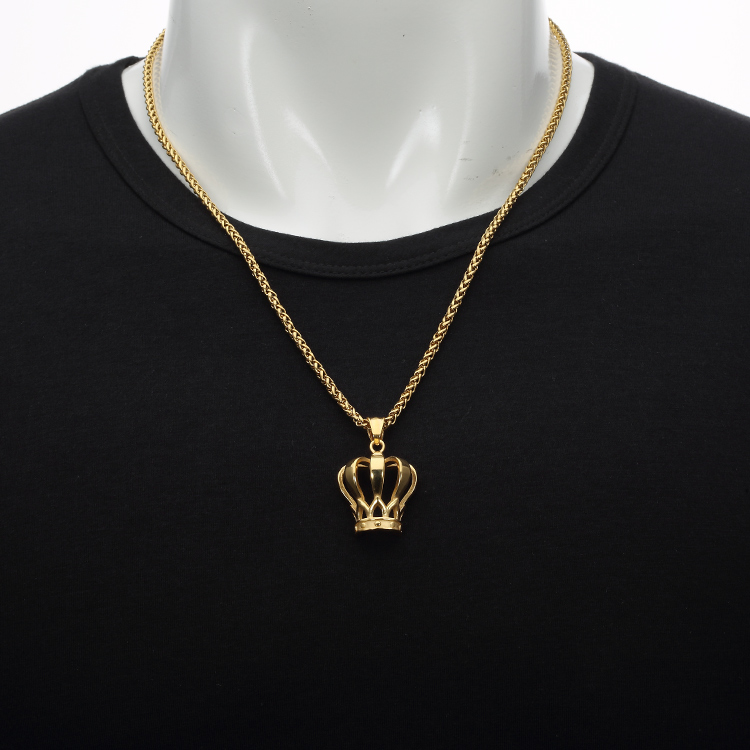 King Crown Pendant Necklace Gold Plated Jewelry Stainless Steel Power Symbol Necklace S413/S414 | ||||||