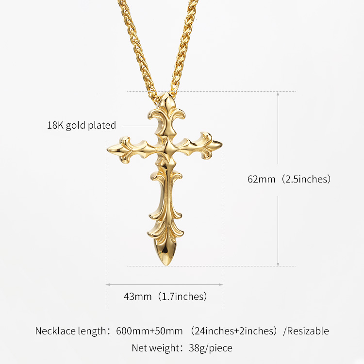 Latin Cross Fleuree Necklace Men Stainless steel Gold Plated Jewelry Budded Cross Necklace S117/S118 | ||||||