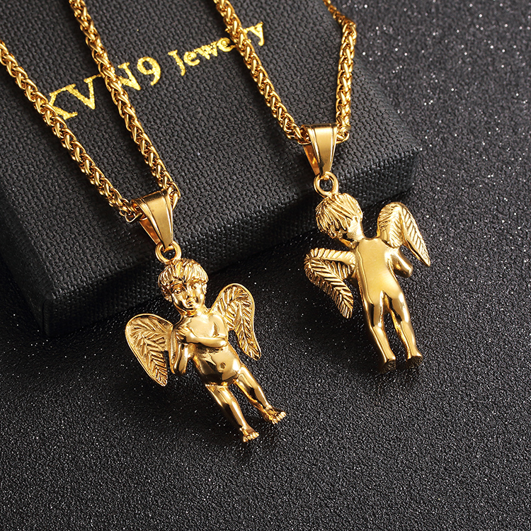 Little Angel Pendant Necklace Trendy Gold Plated Jewelry Stainless Steel Angel Baby Necklace S450 | ||||||