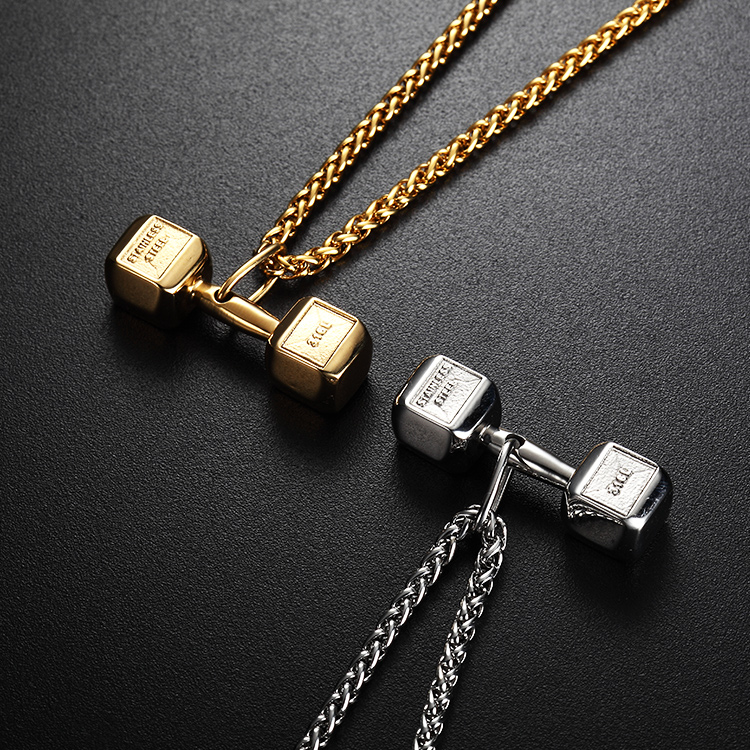 Punk Rock Dumbbell Necklace Pendant Trendy Gold Plated Jewelry Stainless Steel Bodybuilding Gym Necklace S139/S140 | ||||||