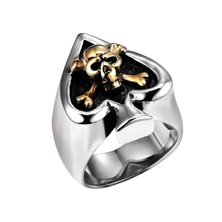 Skull Hearts Gold Ring Men Jewelry Fashion Stainless Steel Ring