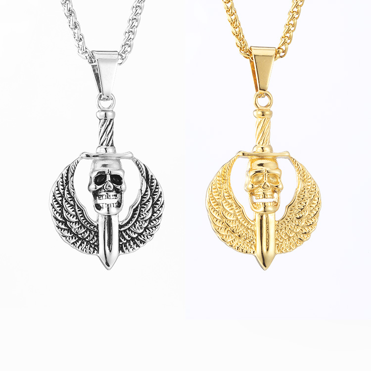 Skull Sword with Wings Pendant Necklace Gold Plated Hip Pop Jewelry Stainless Steel Trendy Cold Weapon Necklace S313/S314 | ||||||