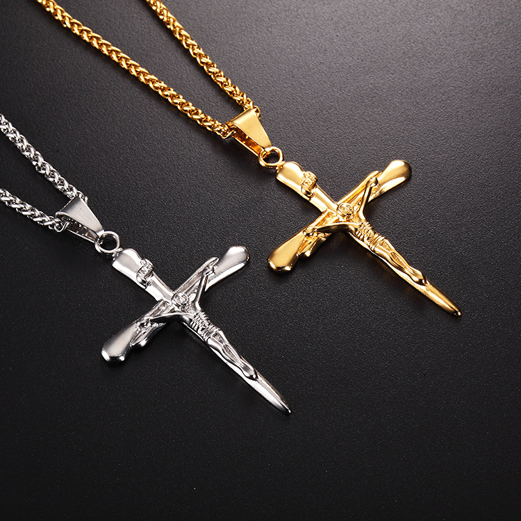 Sword Shape Cross Crucifix Pendant Necklace Christian Gold Plated Jewelry Stainless Steel Cross Necklace S163/S164 | ||||||