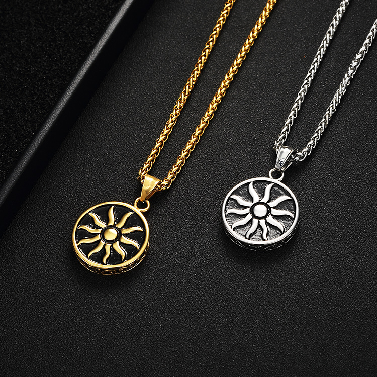 Sun Totem Round Medal Pendant Antique Gold Plated Jewelry Stainless Steel Necklace S245/S246 | ||||||