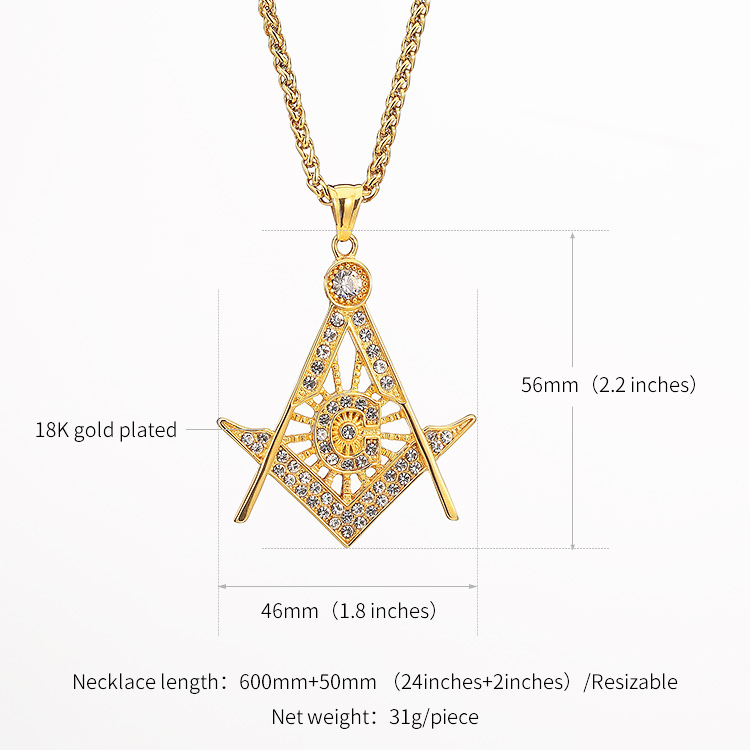 Trendy Free and Accepted Masons Pendant Gold Plated Jewelry Rhinestone Inlaid Stainless Steel Religious Necklace S229/S230 | ||||||