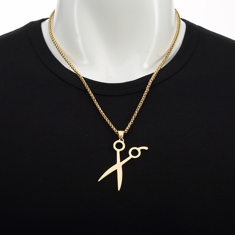 Trendy Scissor Pendant Necklace Men Women Gold Plated Jewelry Stainless Steel Shear Necklace S287/S288 | ||||||